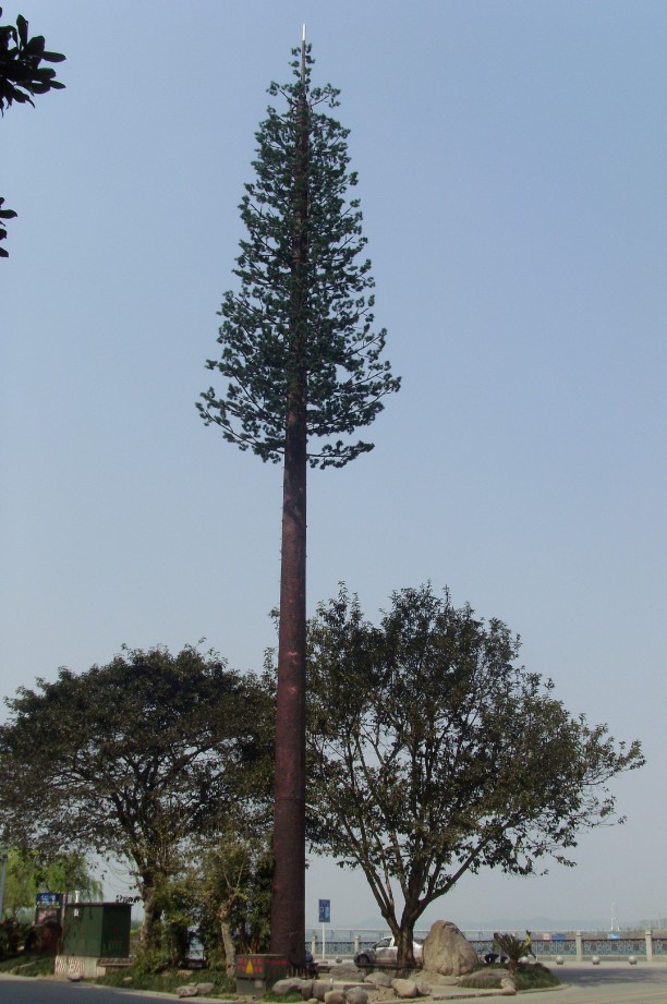 在單管通信塔的基礎(chǔ)上,外飾仿自然樹木材料,其外形逼真、美觀,與周圍環(huán)境完美融合;