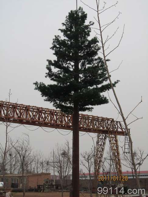 環(huán)境仿生塔一般以自然生長的松樹等四季常青的樹種為仿真的造型樣本。環(huán)境仿生塔是采用現(xiàn)代噴塑和噴涂的各種加工工藝,對單管塔進行仿真?zhèn)窝b,使其達到仿真效果,并且融入到四周的自然環(huán)境中,使其不易被察覺;