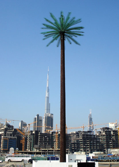 在單管通信塔的基礎(chǔ)上,外飾仿自然樹(shù)木材料,其外形逼真、美觀,與周?chē)h(huán)境完美融合;