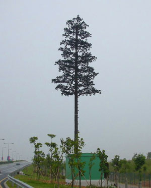 在單管通信塔的基礎(chǔ)上,外飾仿自然樹木材料,其外形逼真、美觀,與周圍環(huán)境完美融合;